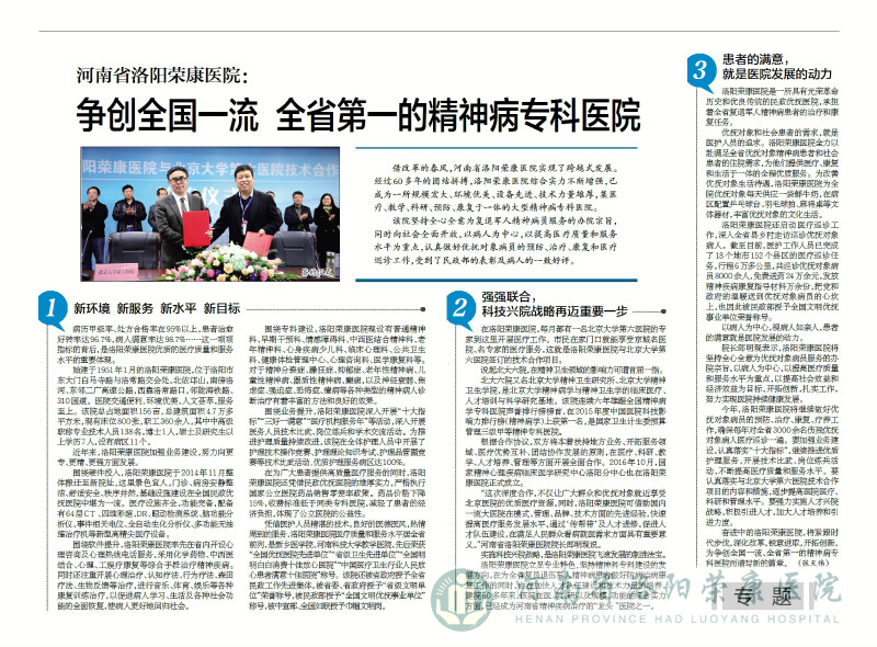 【洛阳日报专题报道】河南省洛阳荣康医院:争创全国一流全省第一的精神病专科医院