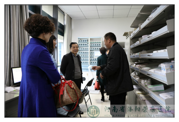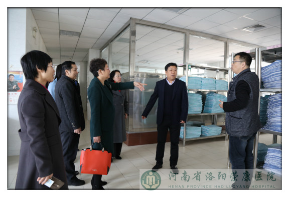 考察团一行7人还在四位院领导及办公室、人事科、后勤管理中心等部门负责人陪同下,实地参观了我院开放病区十病区、封闭病区六病区、西药房、健康体检中心、洗衣房及食堂。考察团对我院医疗设备配置、病区建设、后勤服务管理等赞不绝口。在病区,考察团对我院病区医护人员的服务水平、病房配套设施建设等表示高度赞赏,发出“都想来你们这里养老了”的赞叹;在西药房,看到自动摆药机自动精准地配药,全院病人药物只需一个药师操作电脑即可完成时,更是感叹“这得省下多少人力物力”;在洗衣房和食堂,考察团仔细参观了两地的自动运行设备和紫外线消毒系统,他们称赞,洛阳荣康医院管理运行顺畅高效,正是因为有如此得力的后勤系统作保障。