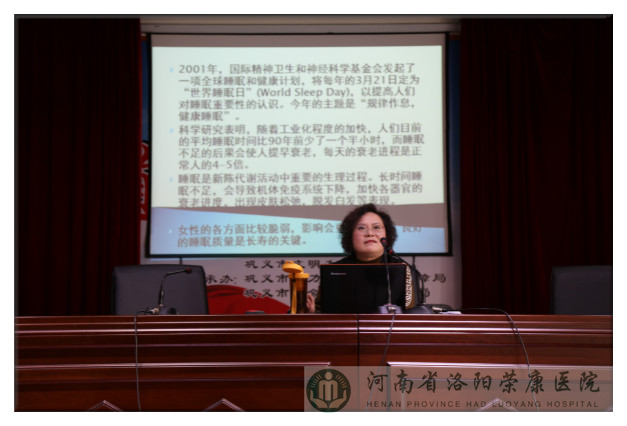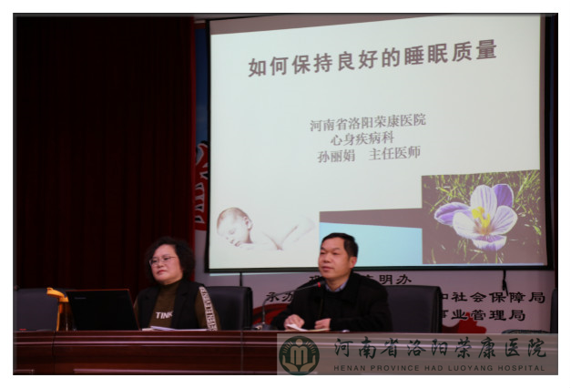 3月21日是世界睡眠日,今年的主题是“加入睡眠世界,保持你的节奏去享受生活”。为让更多人了解睡眠,高质睡眠,经我院与巩义市人社局联系,3月23日,我院心身疾病少儿科主任医师孙丽娟赴巩义市人社局,为百名余职工作题为《如何保持良好的睡眠质量》讲座,受到职工们的好评。巩义市人社局领导王宏乐、于进锋及我院医保办高丽萍副主任参加了讲座。