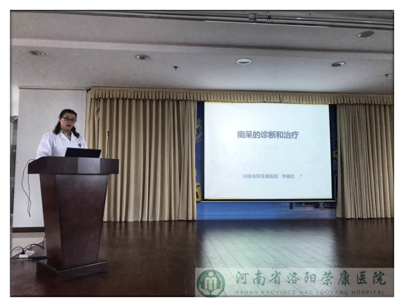 中西医结合科(一)李晓红副主任医师作《痴呆的诊断与治疗》讲座。李晓红从痴呆的流行病学资料,说明痴呆对家庭、社会和国家造成的严重负担和巨大损害。阐述了痴呆的病因、病理、临床表现等。引用国际多种诊断标准对痴呆的诊断进行了详细的归类分析,同时介绍了对痴呆患者记忆力、执行功能、语言功能、精神行为症状、伴随疾病等症状的评估测查方法,推荐了先进的诊断测查工作。对痴呆的临床诊断和治疗起到了极大的促进作用。