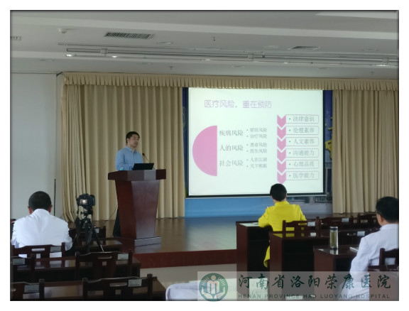 17日下午,黄剑副处长作《设计风险控制与管理的晤谈技术》讲座,详细介绍了在保护医院、医生自身的基础之上,如何更好与患者及家属沟通,规避不必要的风险,使我院医生在如何维护好患者与医院合法权益方面有了新的认识。全院100余名医务工作者聆听了讲座,院长郎明现、副院长陈四军出席讲座。