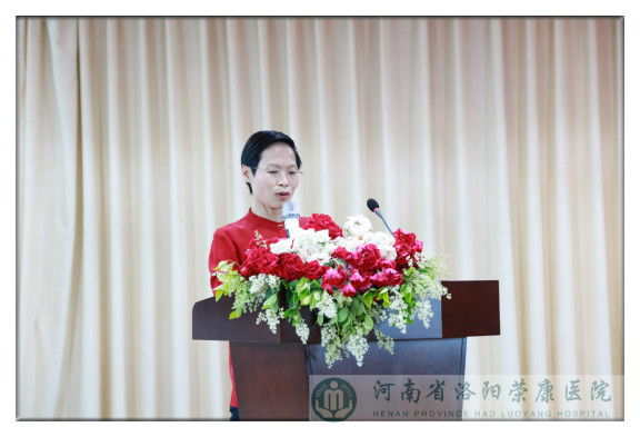 副院长陈四军向大会致贺辞,她代表院领导班子向在护理一线辛勤工作的全体护理工作者致以节日的问候和衷心的祝福。她说,2017年,护理部在洛阳市“双优杯”优质服务竞赛活动中荣获“优质服务集体”;护士王珊珊、王橘盈在第五届河南省职工技术运动会护理技能竞赛洛阳选拔赛中,被授予洛阳市“护理技能标兵”;2018年3月洛阳市护理学会精神卫生专业委员会换届暨学术交流大会在我院召开,护理部主任方崇芳当选洛阳市护理学会第三届精神卫生专业委员会主任委员,这些优异成绩的取得,说明我院护理工作在洛阳市已具有一定影响力。未来医院的发展,机遇和挑战并存,希望全体护理人员继续发扬南丁格尔精神,不忘初心,牢记使命,脚踏实地,勤奋工作,在平凡的岗位上创造出不平凡的业绩,使医院护理工作再上一个新台阶。
