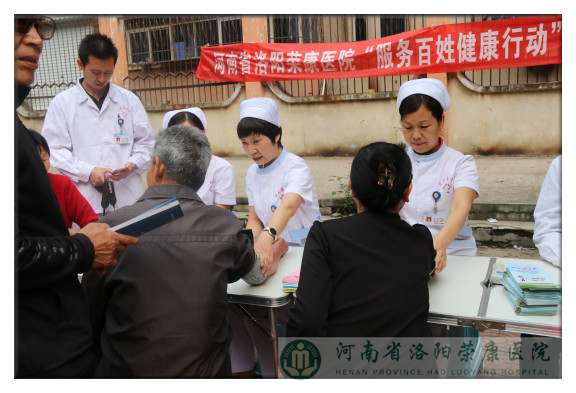 为深入学习贯彻习近平新时代中国特色社会主义思想和党的十九大精神,进一步弘扬“奉献、友爱、互助、进步”志愿精神,2018年9月28日,阳光明媚,桂花飘香,河南省洛阳荣康医院一行7人,在洛阳市洛龙区东明社区进行了一场主题为:“关爱老人健康 服务百姓”的科普宣传活动。