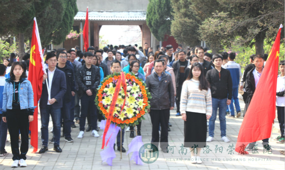 烈士忠魂千秋在,革命精神万代传。在清明节即将来临之际,为弘扬祖国传统文化,继承革命先烈遗志,我院先后组织开展了线上为革命烈士献花、祭扫等系列活动,并发出文明祭祀倡议书。为了进一步增强爱党、爱国、爱院的意识,推进移风易俗,倡导绿色祭祀。4月4日上午,我院组织40多名青年党员、团员在院党委书记陈国军和党委副书记、纪委书记宋建军的带领下,到孟津县金村烈士陵园扫墓并参观我院老院址。