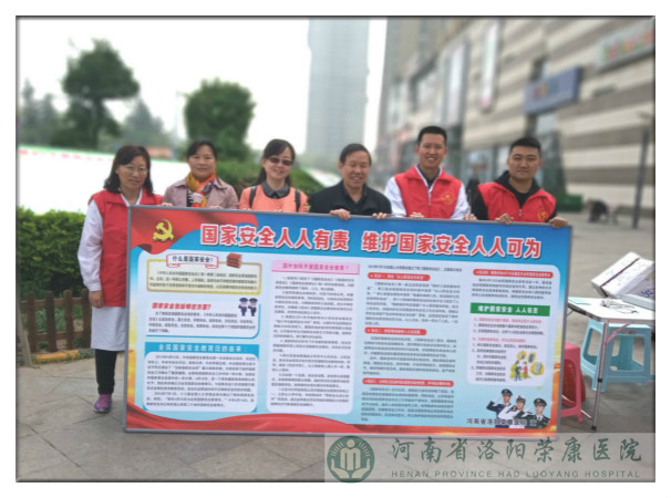 为做好2019年“4.15”全民国家安全教育日工作,营造维护国家安全和社会安定的良好氛围,教育引导广大党员干部坚持习近平总体国家安全观,着力防范化解重大风险,喜迎中华人民共和国成立70周年。根据河南省退役军人事务厅有关通知要求,4月11日上午,我院组织9名注册志愿者在洛阳市宝龙广场开展了全民国家安全日宣传教育志愿服务活动。