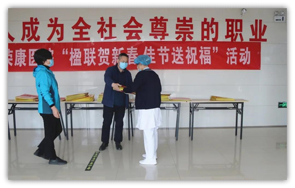 无联不成春,有联春更浓。迎新春送对联活动已是我院延续多年的老传统了,根据安排,本次活动是以科室为单位排队领取春联,大家早早来到领取现场,宋书记代表院党委、院领导班子将一幅幅红彤彤、散发着美好“福”气的春联送到职工手中,同时将满满祝福一并送上,大家接过春联脸上无不洋溢着喜悦之情,纷纷说道:“感谢院党委的祝福和关心,在信息高度发达的今天,这种送温暖的方式就是最亲近、最直接的表达,寥寥数字,春节的年味和祝福就尽在字里行间传递,让大家感到情真意切,幸福温馨。”
