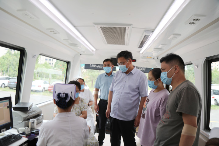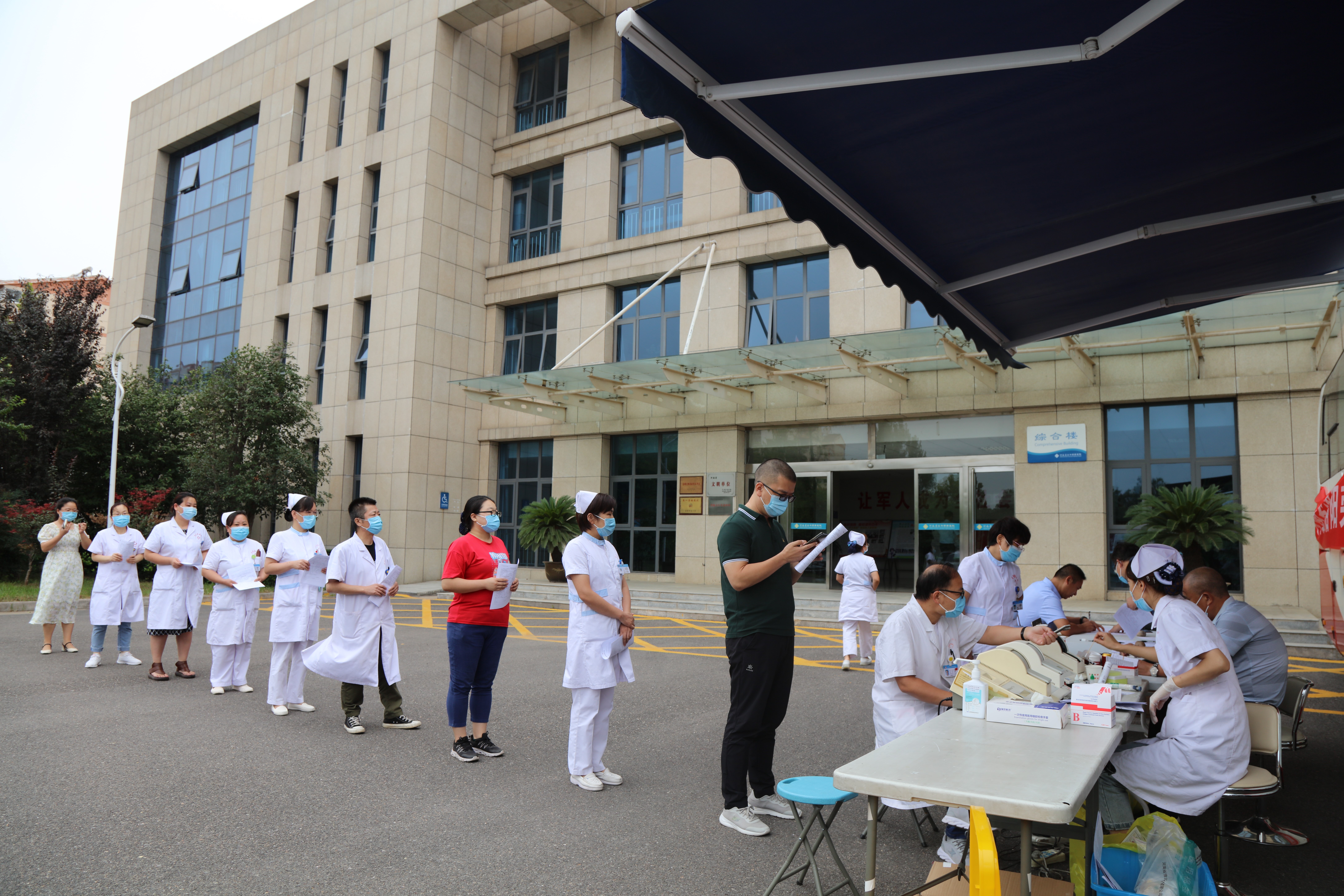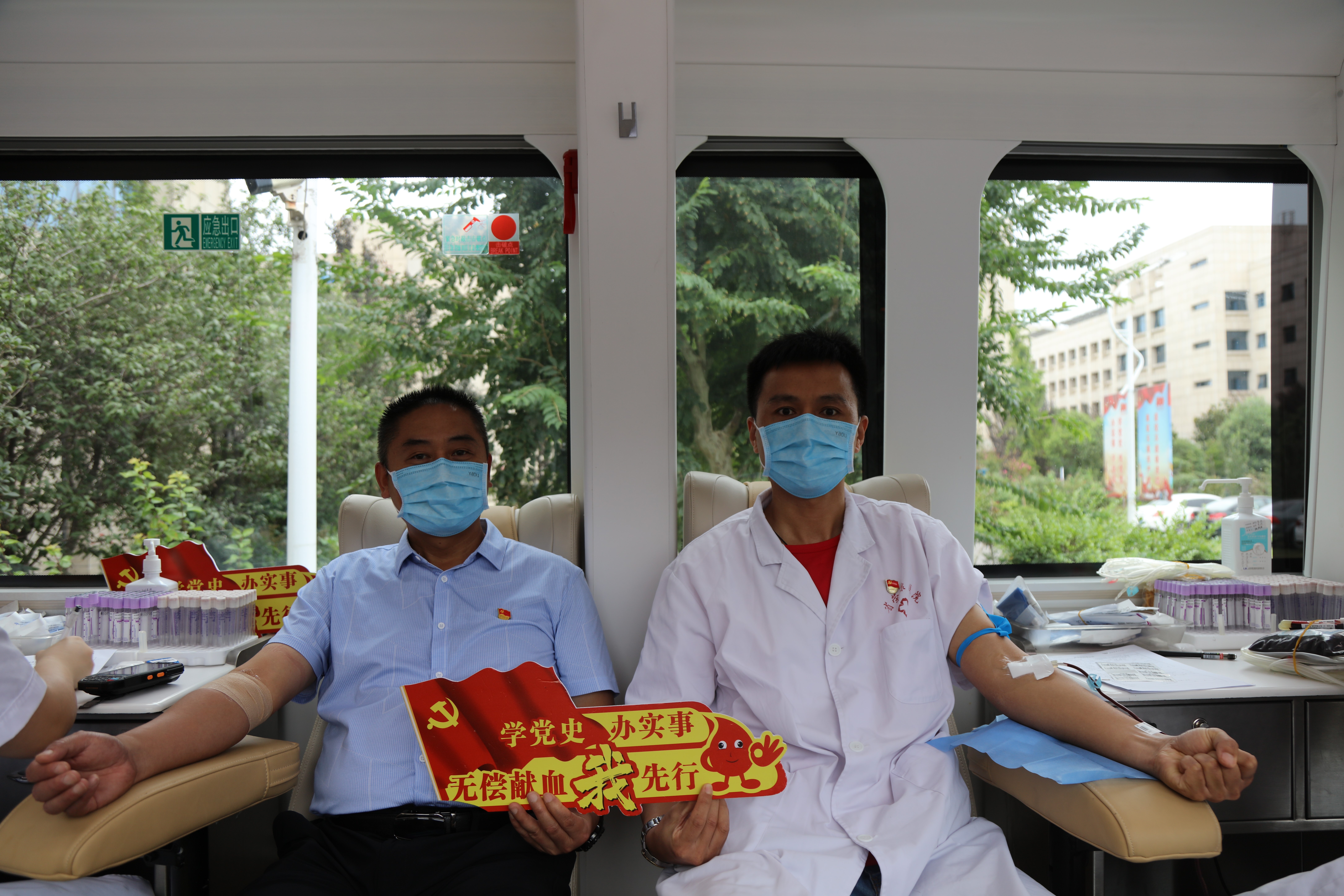 血是生命之泉,爱是生命之光,无偿献血架设起人与人之间互助、友爱的桥梁,体现了无私奉献的人道主义精神。         疫情时期,医务工作者不仅日夜奋战在抗疫第一线,履行着救死扶伤的责任。同时,也在社会需要的时刻,义无反顾地献出自己涓涓热血。         按照《洛阳市卫生健康委关于印发【医疗机构集中宣传暨“白衣天使献血月”活动方案】的通知》精神,我院发出倡议书:号召大家弘扬医务工作者无私奉献的职业精神,践行“无偿献血我先行”的社会使命。倡议一经发出,我院职工 踊跃报名。         8月26日下午,我院职工依次前来参加无偿献血,院领导、各科室主任率先垂范登上献血车,撸起袖子积极献血。尤东坡院长、陈四军副院长也亲临现场看望和慰问参与献血的职工。