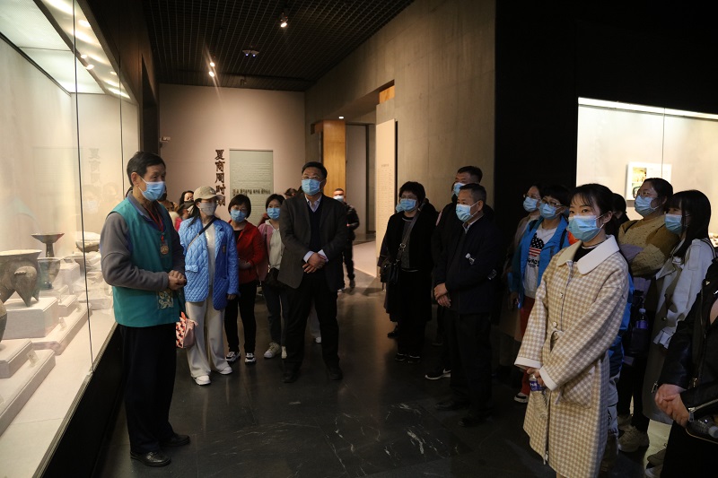 洛阳博物馆北临风光旖旎的洛浦公园,南接隋唐城遗址植物园,采用“鼎立天下”的设计理念,整体建筑外观为大鼎造型,曾入选“第十届全国博物馆十大陈列展览”之一。博物馆志愿者给大家讲述河洛文明发展史,听讲河南“豫”的来历。陈列馆以时间为序,展示洛阳地区在史前时期、夏商周时期、汉魏时期、隋唐时期和五代北宋时期的发展历程。特别是一件件国之重器,让大家走进洛阳历史,感受古都文化。大家认真聆听、积极讨论,并不时提出问题,讲解员们也及时给予了详尽的解答。