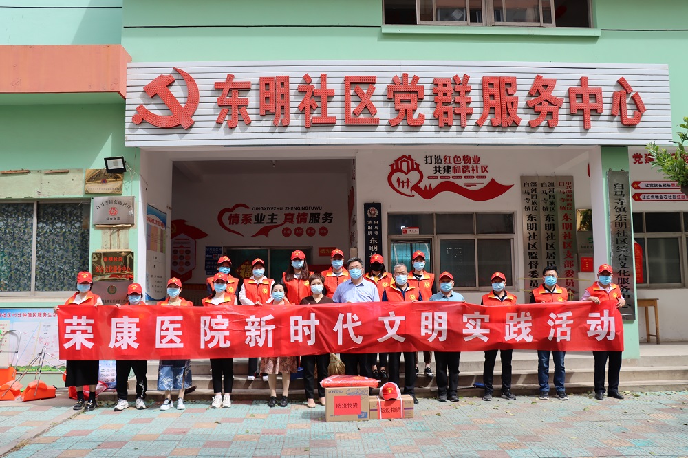 文明实践进社区 结对共建聚合力 为落实千分制考评标准,大力发展志愿服务品牌项目,将社区结对帮创工作落到实处,根据我院专业优势和文明单位创建帮扶社区的要求,以“四送一助力”志愿服务项目为载体,4月22日上午,我院组织开展了捐赠防疫物资、卫生急救知识科普及清洁家园等活动,院长、党委副书记尤东坡带领党员干部和医护志愿者共40余人参加了活动。