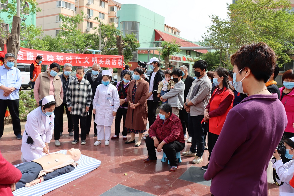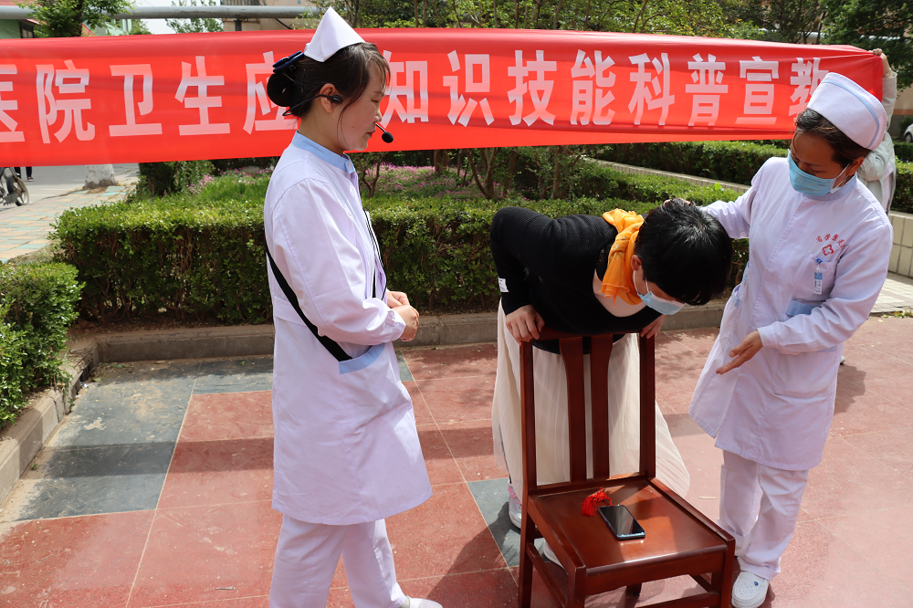 为进一步拓展优质护理延伸服务项目,提高社区居民在突发事件中的自救互救能力,普及应急科普知识,4月22日上午,我院组织“卫生应急知识技能科普宣教进社区”活动。在瀍河区东明社区进行“单人徒手心肺复苏术” 和“气道阻塞的现场急救” 示教讲解。