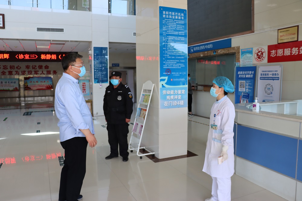 5月4日上午,院长、党委副书记尤东坡深入院“一线”检查指导工作。重点检查了疫情常态化防控、医疗业务、安全生产、环境卫生等相关工作。