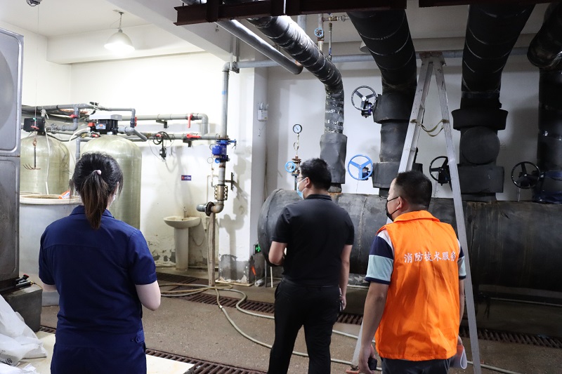管理组对标对表,逐条逐项梳理,认真查阅了培训及会议记录、相关文件,记录本等各项佐证资料。建筑组实地查看了门诊楼、病房楼、综合楼、后勤楼的消防安全情况。重点检查了消防安全疏散通道、各类消防安全标识、消防设施运行及灭火器配备情况;检查了各部位及楼顶是否堆放易燃杂物,各电气线路是否有防护措施等。设施组深入消防控制室、空调机房、后勤厨房、配电室等重点区域,通过实际操作,现场提问等方式对消防设施设备、值班人员业务、各项记录等情况进行全面、细致的检查。针对检查发现的问题,专家组当场进行指正并给予整改意见,相关人员及时记录并整改落实,坚决消除各类消防安全隐患,切实做好消防安全管理工作。专家组一行对医院消防安全各项工作给予高度评价,认为我院高度重视消防安全工作,能够认真贯彻落实国家、省、市以及相关部门的有关文件要求,制度完善、措施到位、工作扎实,并对下一步医院消防安全工作提出更高的要求。