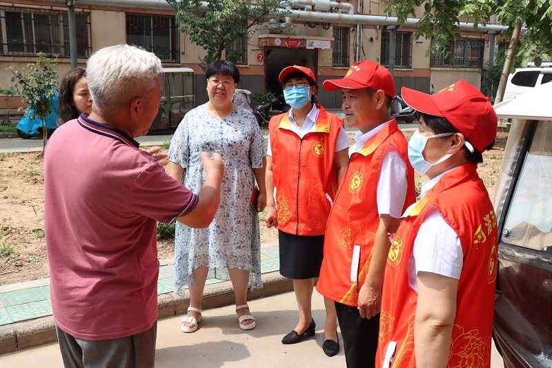 学习结束后,宋书记和白马寺镇领导、社区书记一同查看文明城市社区创建点位,并看望慰问了2名社区困难党员,为他们送去了米面油等慰问品。党员志愿者拿起清扫工具对楼道小广告进行了清理,对绿化带中的白色垃圾进行捡拾,并在小区内发放调查问巻表、开展文明行为劝导等活动。大家不顾天气炎热, 个个热情高涨、干劲十足,充分发扬了不怕脏、不怕累的精神,为社区居民营造了一个整洁、美观的生活环境,受到了社区居民一致称赞。