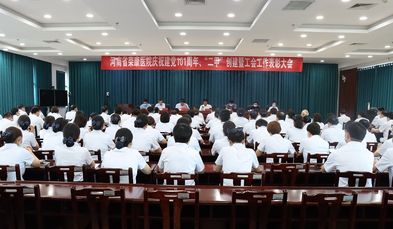 8月5日下午,我院在门诊楼五楼会议室召开庆祝建党101周年、“二甲”创建暨工会工作表彰大会。省退役军人事务厅党组成员、副厅长姚国宝、人事处副处长郭清明、拥军优抚和褒扬纪念处副处长张栋和院领导班子成员、中层干部、护士长、高级职称人员及受表彰的优秀共产党员、优秀党务工作者、二甲创建优秀个人、工会文明职工共120余人参加。