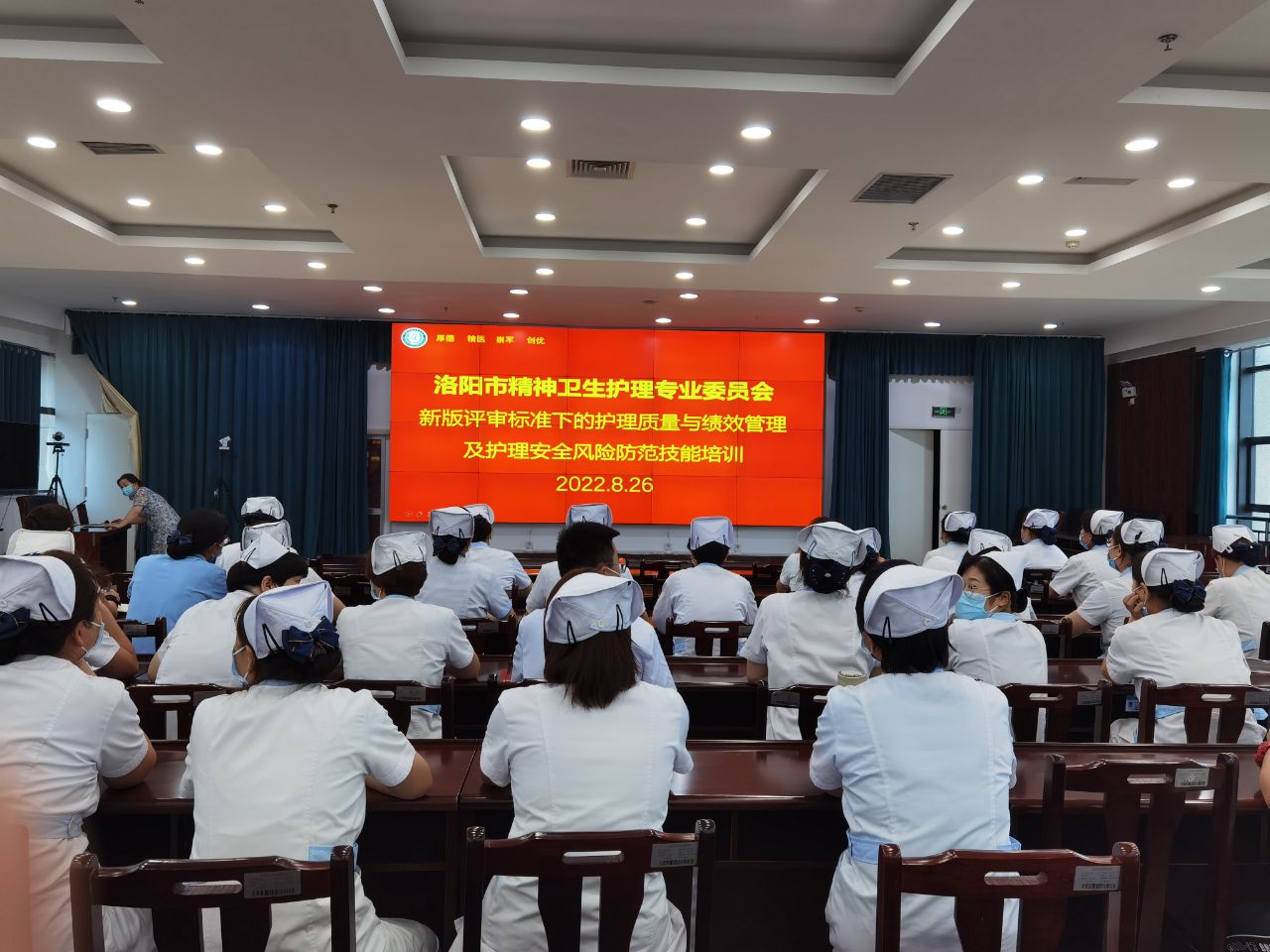8月26-27日,洛阳市精神卫生专业委员会在我院门诊五楼举办新版评审标准下的“护理质量与护理绩效管理及护理质量安全风险防范”线上培训,洛阳市精神卫生护理专业委员会各位专家委员及我院全部护理人员共270余人线上线下同步观看学习。