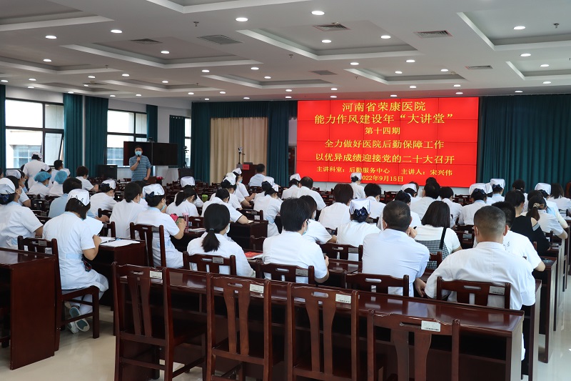 本期“大讲堂”由后勤服务中心宋兴伟主讲,将后勤服务工作与能力作风建设结合起来,对近期后勤工作做了总结汇报。后勤服务中心始终把住院患者及全体职工的满意度作为衡量后勤服务质量的重要指标,努力在制度上创新,优质服务上下功夫。在保障全院公务用车、基础设施维护、安全管理、物资采购、物业及餐饮公司管理的基础上,积极创新服务形式,在医师节、护士节为医护人员送上蛋糕、鲜花等节日祝福;改造病人康复运动场所,新建了塑胶篮球场、羽毛球场、排球场等多功能运动场......不断增强履职尽责的能力,筑牢务实求效的作风,助力医院高质量发展。