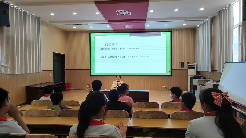 为促进学生的心理健康发展,提高青少年情绪管控能力,正确宣泄生活、学习中的压力,5月25日下午,我院心理咨询科主任、中级心理治疗师路多到瀍河区新建小学,以“积蓄心能量,与梦想一起启航”为主题,为100余名小学生进行了一堂生动有趣的心理健康讲座。