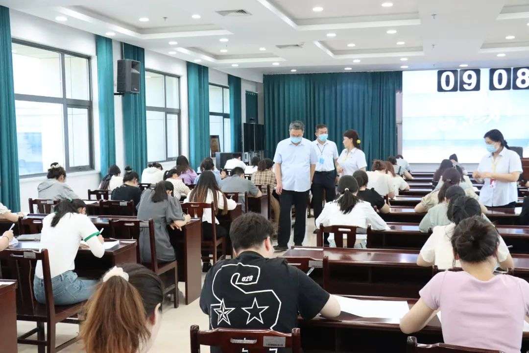 为适应医院发展需求,加强人才梯队建设,凝聚优秀人才,壮大医院护理队伍,6月10日,我院成功举办了2023年非在编护理人员公开招聘。 此次招聘共收到报名简历146份,经过层层筛选,140名考生成功通过资格审查,最终116名考生经过电话确认参加招聘考试。 为确保招聘工作顺利进行,我院成立了以党委书记、院长为组长,其他院领导为副组长,人事教育科、纪检监察室、医务科、护理部相关负责人为成员的公开招聘工作领导小组,周密部署、提前谋划、纪检监察部门全程监督,坚持“公开招聘、公平竞争、公开选拔、择优录取”的原则,制定了详细的工作方案及招聘流程。 6月9日,我院组织召开考务会,从时间节点、考场布置、试卷保存、监考注意事项、考场纪律、面试安排、后勤保障等各方面进行了详细部署,并责任落实到人,严格按照公开招聘有关程序进行,各部门各司其职、协同联动,为此次招聘工作保驾护航。 6月10日早上八点,考生陆续抵达医院,经过身份核对、金属探测等流程后进入考场,按照考号依次就坐并签到,准备考试。 上午九点,在监督人员、考生检查确认试卷密封无误后,监考人员分发笔试试卷,考试正式开始。十点,笔试结束,在纪检部门人员监督下,试卷统一装订密封,送至阅卷室批改。