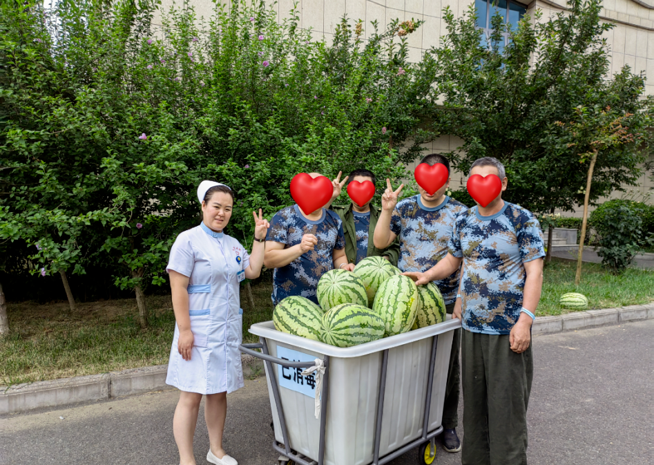 时值“中伏”第一天,正是上蒸下煮的酷暑季节,为切实做好住院退役军人优抚对象患者防暑降温工作,进一步提高他们自豪感和幸福感,7月21日上午,我院开展“酷暑送清凉”活动,为退役军人优抚对象住院患者统一发放大西瓜,为他们送去一片甘甜和清凉。在炎炎夏日用真情和关爱为他们撑起一片绿荫,使他们深切感受到党和政府给予的温暖。