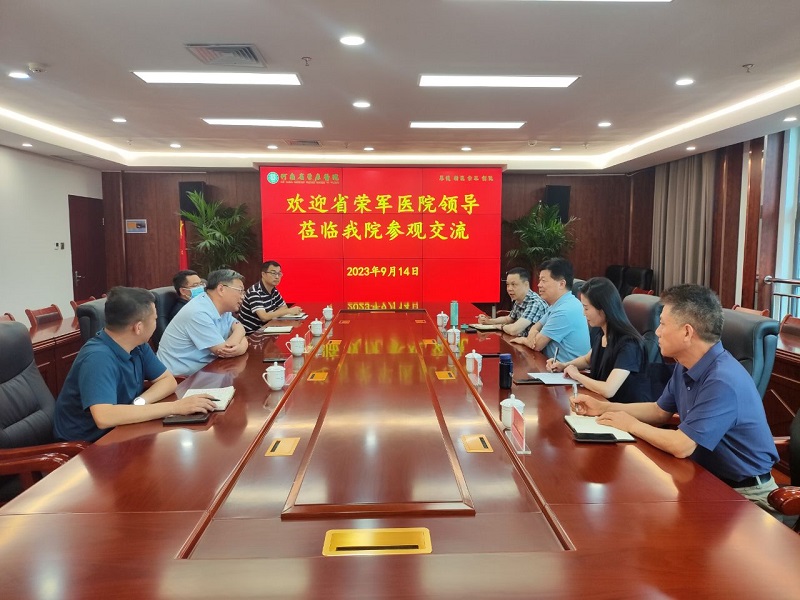 9月14日下午,河南省荣军医院院长孙志伟、副院长王华等一行4人莅临我院工作交流,我院党委书记、院长尤东坡,党委副书记、纪委书记吕彦吉及院办公室、规划财务科负责人陪同。