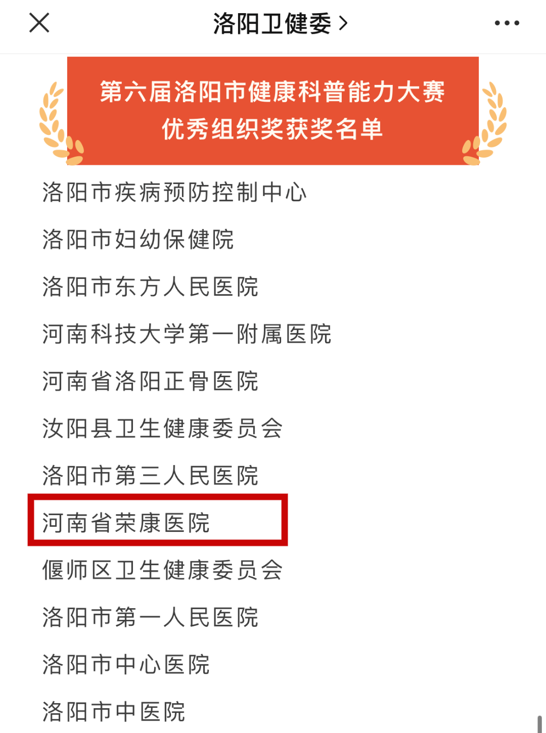 通过积极参与健康科普能力大赛活动,有力提升了我院医务人员普及健康知识的意识和能力,为提高全民健康素养水平,做好常态化健康科普工作及助力健康洛阳建设贡献应有的力量。