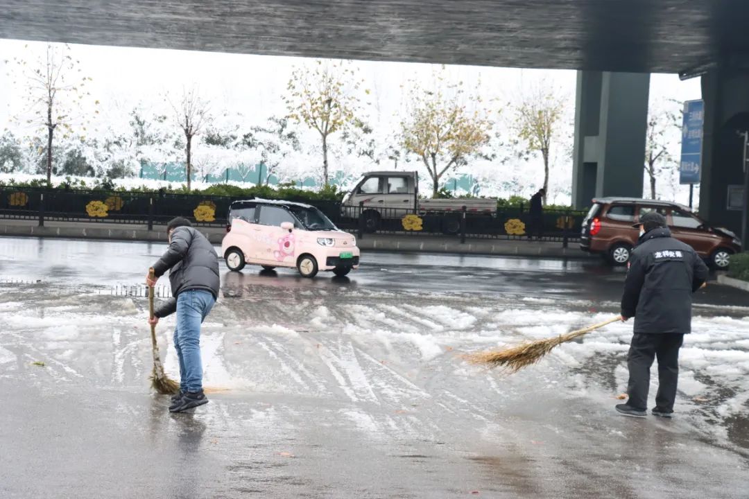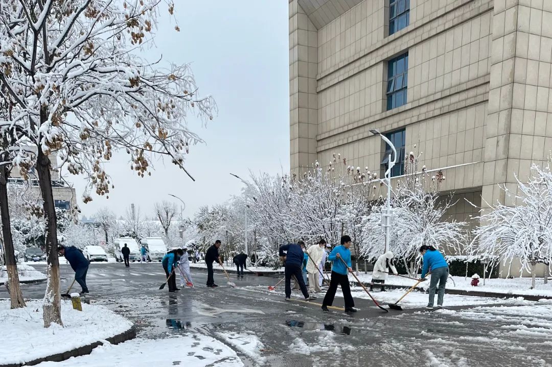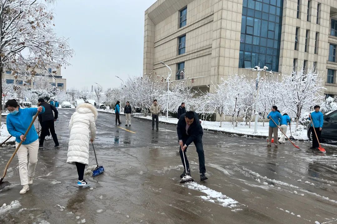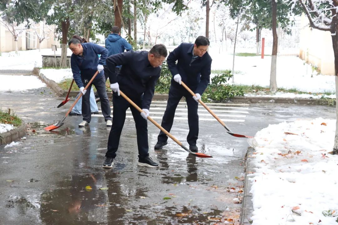 全体干部职工不畏严寒,纷纷拿起铁锨和扫帚,积极投入到清雪除冰的行动中。大家配合默契,干劲十足,尽管天气寒冷,但院内到处都活跃着劳动者的身影。
