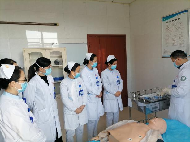 首先科室主任闫登科、副主任汪金涛从气管插管的各项适应症,包括禁忌症、操作方法及注意事项做了详细的介绍和讲解并现场进行了生动形象的示范操作,力求使每一位医护人员都能够熟练掌握气管插管术的操作要领及注意事项。随后,大家轮流在模拟人上进行气管插管操作训练,科室医护人员反复练习,认真操作,最终全部掌握紧急气管插管技能。