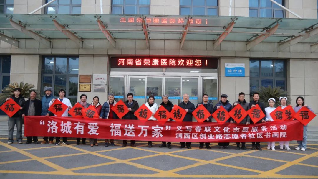 春节临近,年味渐浓。为全面深入学习习近平文化思想,“推进文化自信自强,铸就社会主义文化新辉煌”的精神,1月30日,洛阳市志愿者社区书画院院长刘士堯一行12人来到我院,开展春节送春联活动,向全院干部职工赠送春联,送上新年祝语的同时,还向广大患者朋友和医务人员传递关爱和温暖。