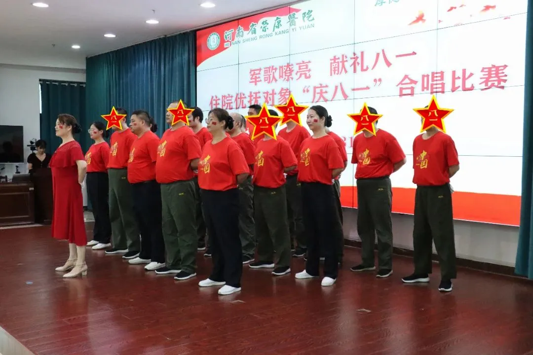 与优抚科合作每季度举办全院范围的优抚对象文体活动比赛,逢节假日举办各类主题活动。先后开展优抚对象趣味运动会、第八套广播体操比赛、“军歌嘹亮 献礼八一”合唱比赛、开展“迎端午 送安康”医社患联欢会、“月盈中秋 情满荣康”庆双节老兵生日祝福会,组织优抚对象患者排练《强军战歌》参加医院“龙腾福瑞迎新春”春节联欢会,让患者与职工共度佳节,体验中国传统佳节的欢乐气氛。