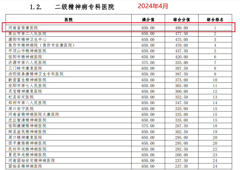 近日,河南省医疗服务质量和绩效分析评价平台发布了2024年4月河南省DRG绩效分析报告,我院DRG绩效综合得分480分,在全省参与考核的25所二级精神专科医院中首次位列第一名。