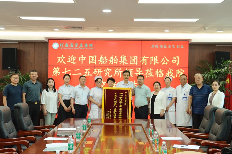 7月12日上午,中国船舶集团有限公司第七二五研究所(以下简称七二五所)工会副主席郑菊峰、离退办主任陶双林及七二五所社区党委书记刘瑜一行4人到我院进行工作交流,并送来了锦旗和感谢信。院党委书记范化兴,党委副书记、纪委书记吕彦吉,党委委员、副院长方崇芳及相关科室负责人陪同。