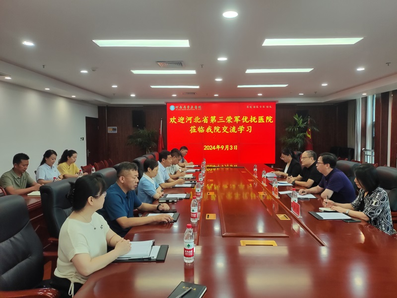 9月3日上午,河北省第三荣军优抚医院党委委员、副院长王志刚带队一行4人莅临我院参观交流学习工作。我院党委书记范化兴同志,党委副书记兼纪委书记吕彦吉同志,副院长陈四军同志,党委委员兼副院长方崇芳同志及相关部门负责人热情接待并陪同参观。