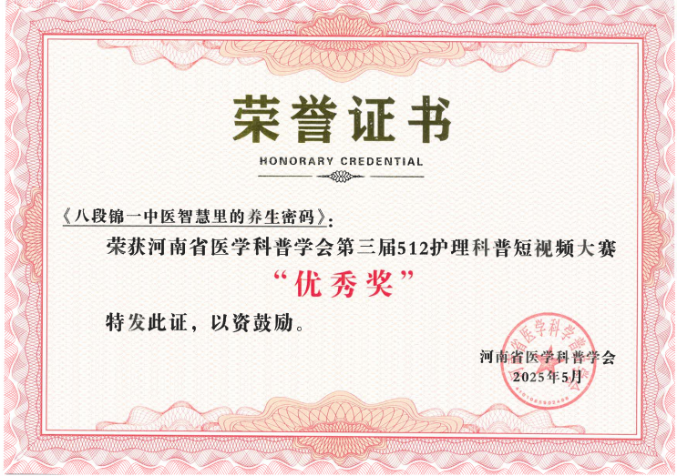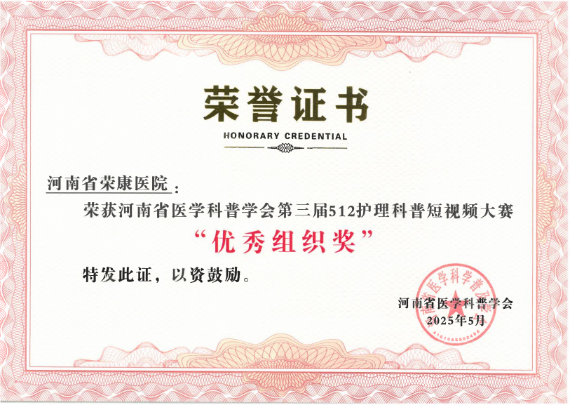 近日,2025年河南省医学科普学会第三届512护理科普短视频大赛评选结果隆重揭晓。我院选送的科普作品凭借卓越的专业水准和创新的表现形式,在全省497家医疗机构选送的3025件参赛作品中脱颖而出,一举斩获优秀奖及优秀组织奖两项荣誉,充分彰显了我院护理团队的专业实力与科普创新能力。