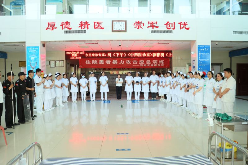 为全面提升医护人员对暴力攻击突发事件的应急处置能力,使其熟练掌握应对技巧与方法,切实保障医患安全,5月19日下午,护理部在门诊大厅组织开展了“住院患者暴力攻击行为应急预案演练”。党委委员、副院长方崇芳莅临现场指导,以中西医结合科、情感障碍科联合演练为重点,临床各护理单元护士长、护理骨干及保卫科相关人员共同参与。