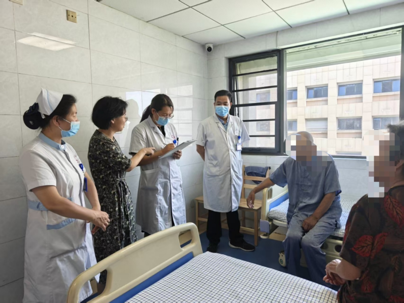 周一查房时,王主任带领团队详细了解礼某的治疗和生活情况。患者激动地表示:“这里环境舒适,可住单间并有家人陪护,医护人员悉心照料,还免费提供营养餐食,非常感谢医院和政府的好政策。”