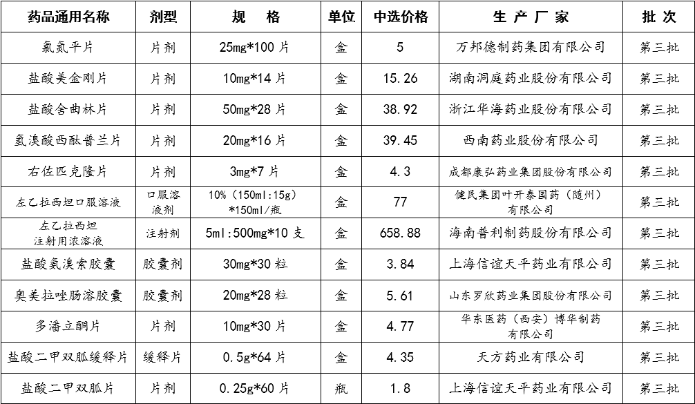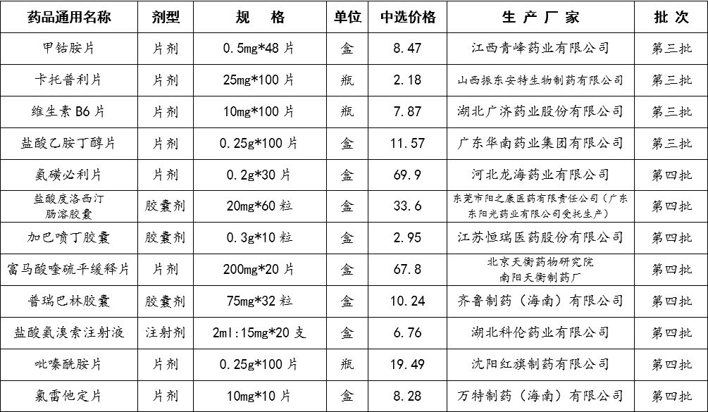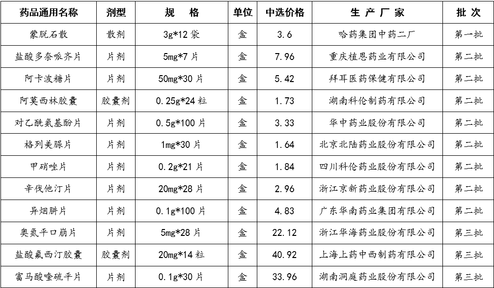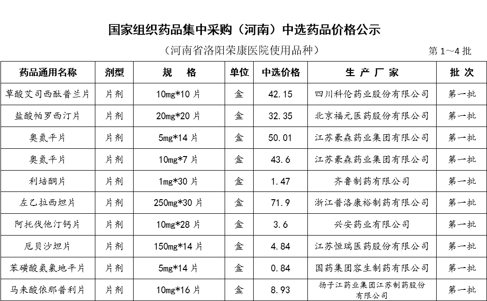 国家组织药品集中采购(河南)中选药品价格公示