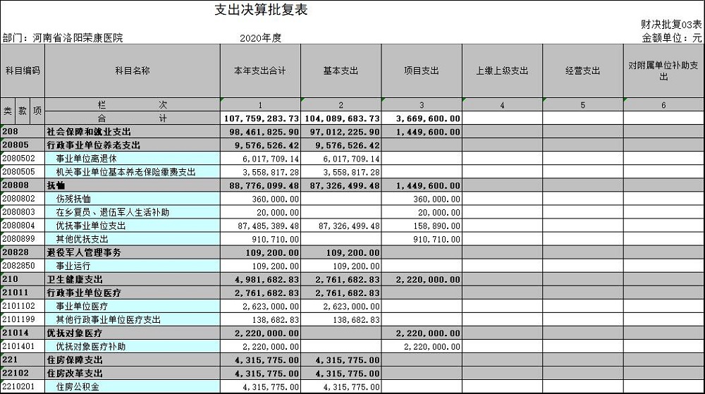 2020年度一般公共预算财政拨款支出年初预算为6583.30万元,支出决算为6371.26万元,完成年初预算的96.78%。 其中: 1.社会保障和就业支出。年初预算为5872.6万元,支出决算为5441.51万元,完成年初预算的92.66%。决算数与年初预算数存在差异的主要原因是优抚事业单位补助项目资金本年未完成预算计划,结转下一年使用。2.卫生健康支出。年初预算为262.30万元,支出决算为498.17万元,完成年初预算的189.92%,决算数与年初预算数存在差异的主要原因是追加了优抚对象医疗等项目支出,支出数高于年初预算数。3.住房保障支出。年初预算为448.40万元,支出决算为431.58万元,完成年初预算的96.25%,决算数与年初预算数存在差异的主要原因部分在职人员退休。