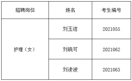 根据《河南省洛阳荣康医院2021年非在编人员公开招聘公告》有关规定,由于个别考生未按时参加体检等原因,在同岗位应聘人员中,按考试总成绩从高分到低分依次等额进行递补,现将递补体检人员名单公告如下: