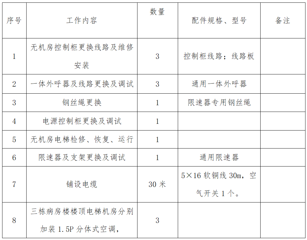 医技楼电梯修理项目、零部件使用清单