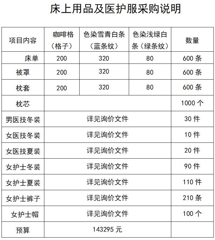 乐动在线登录官网,乐动(中国)购置床上用品及医护服项目询价公告