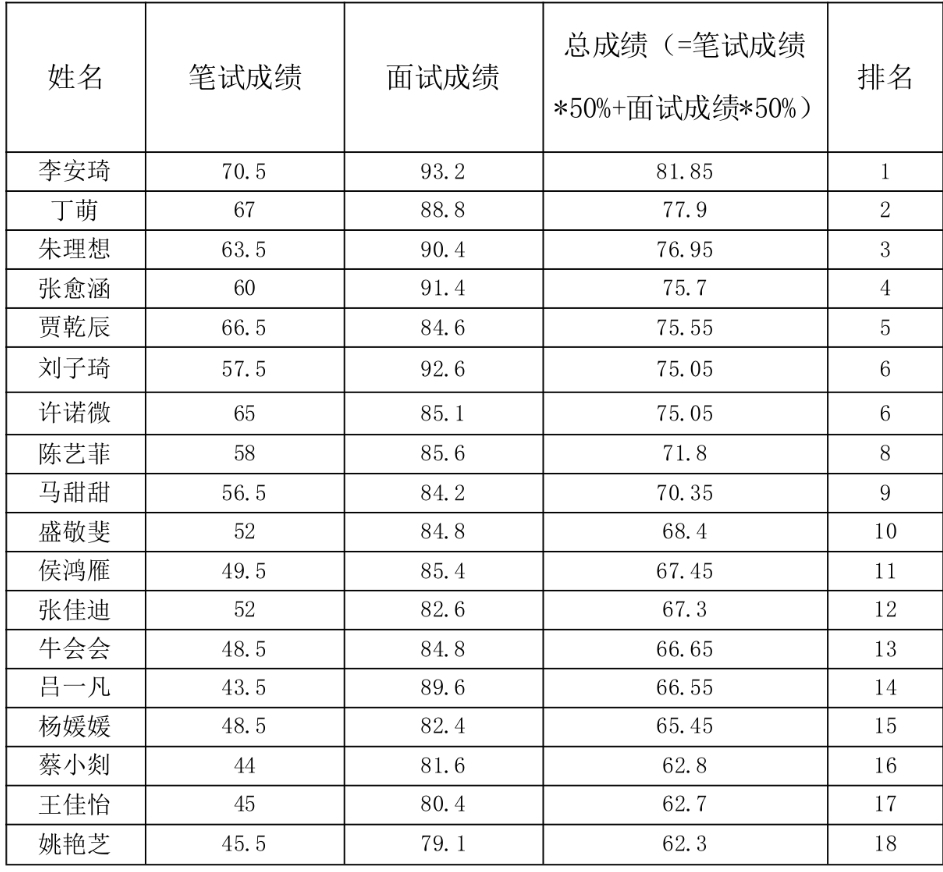 根据《乐动在线登录官网,乐动(中国)非在编人员招聘公告》有关安排,笔试、面试工作已结束,现将进入面试人员成绩公告如下: